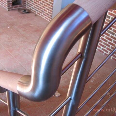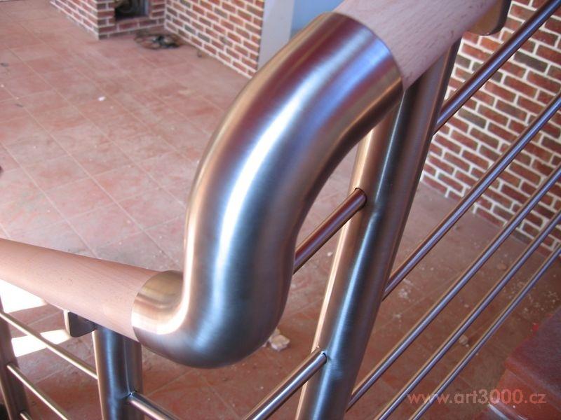 Výroba nerezového kombinovaného zábradlí s dřevěným madlem.