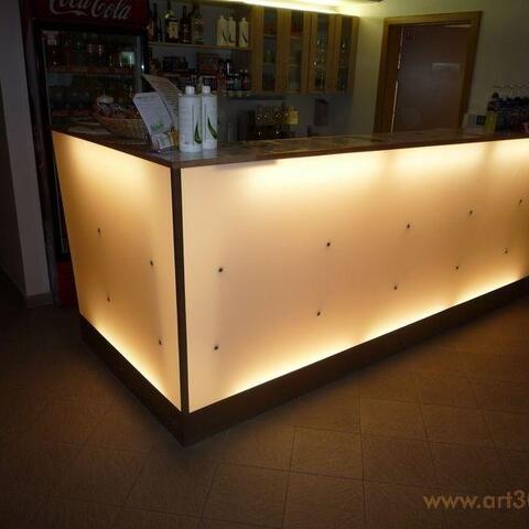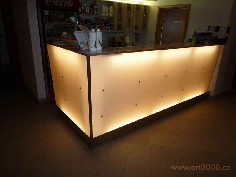 • prosvětlený skleněný pult z nerezu pro obsluhu