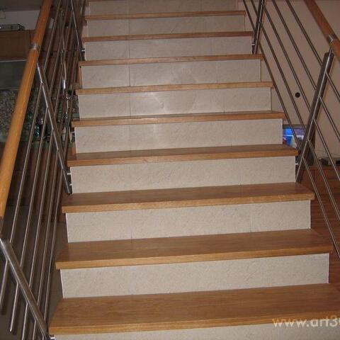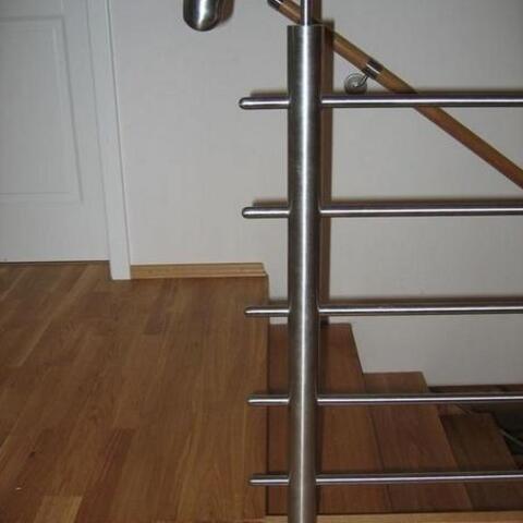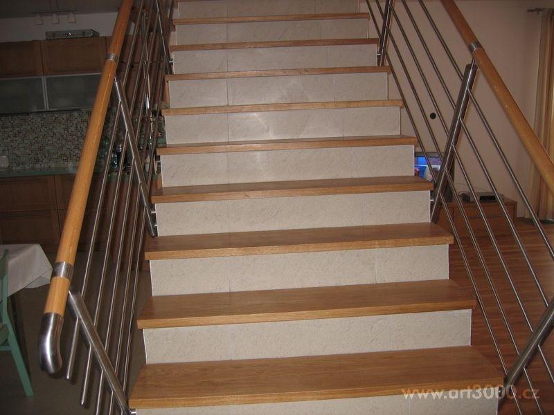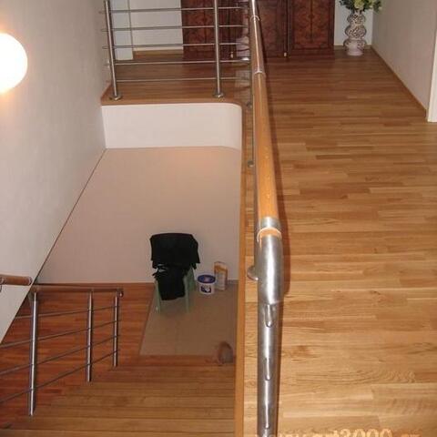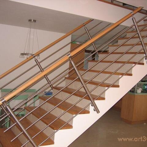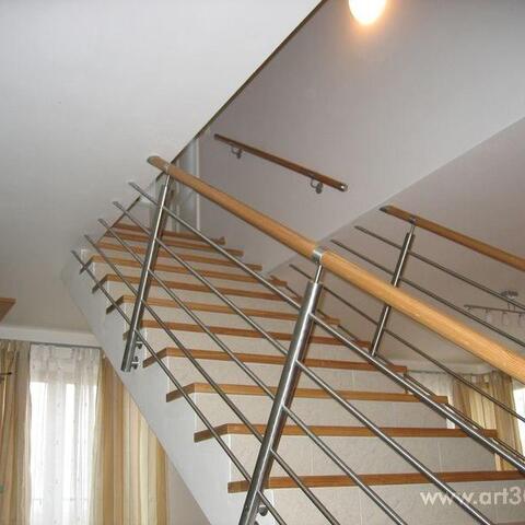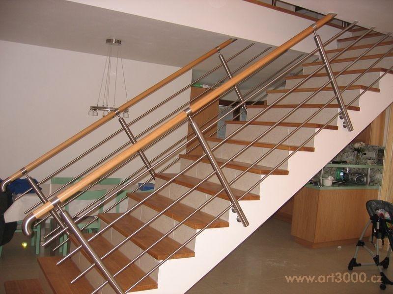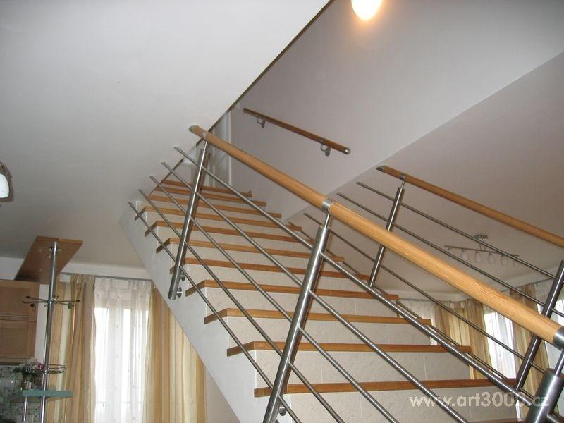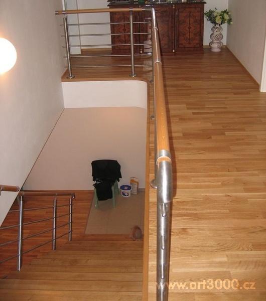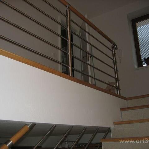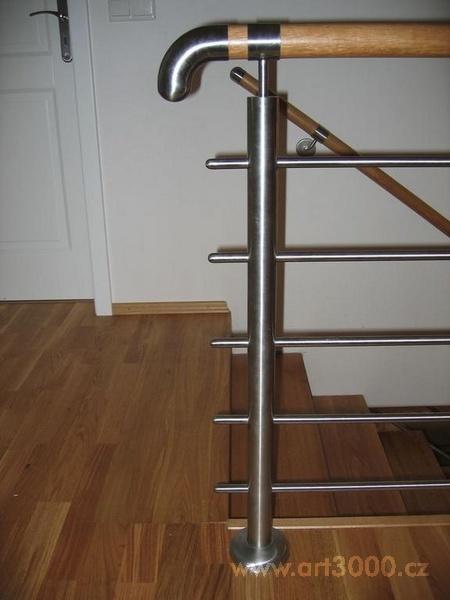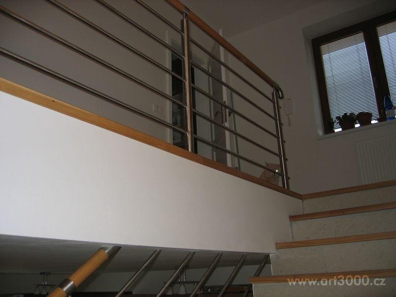 Zábradlí v nerezovém broušeném provedení s dřevěným madlem.