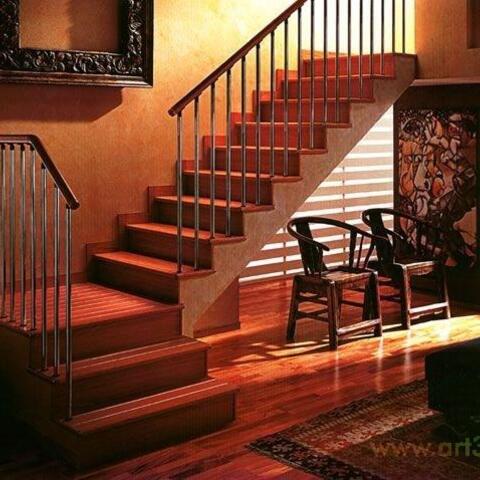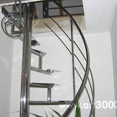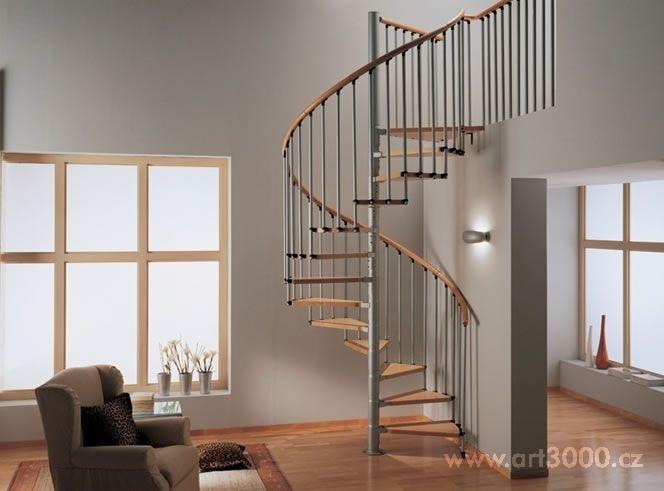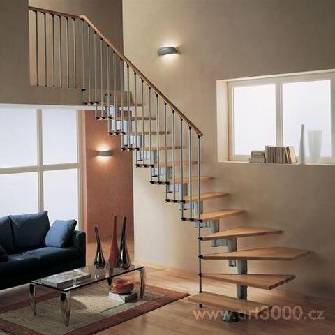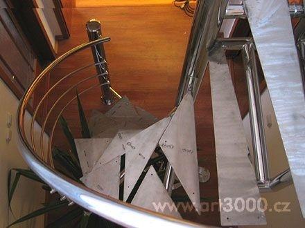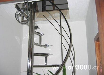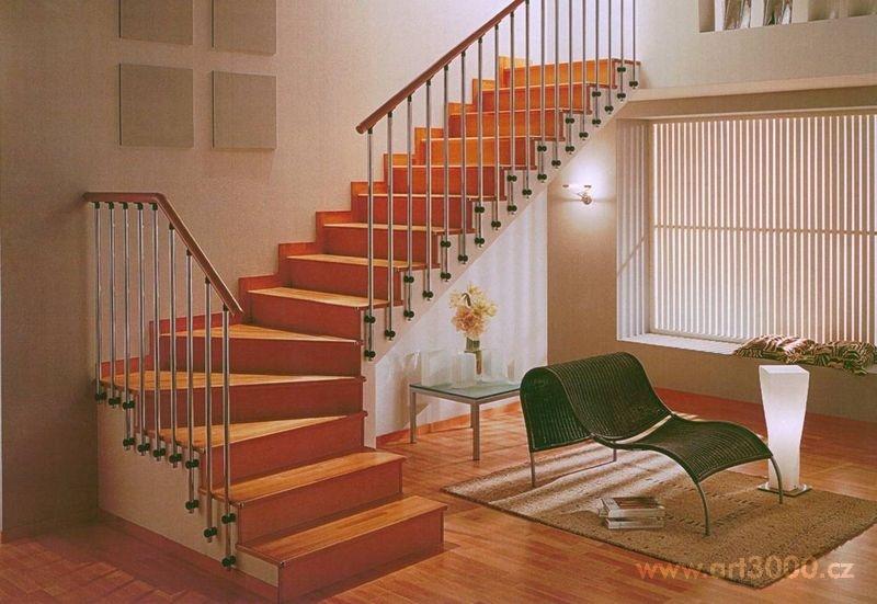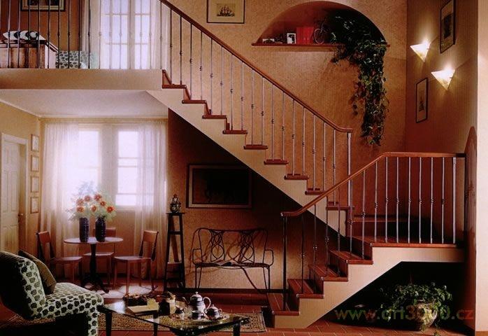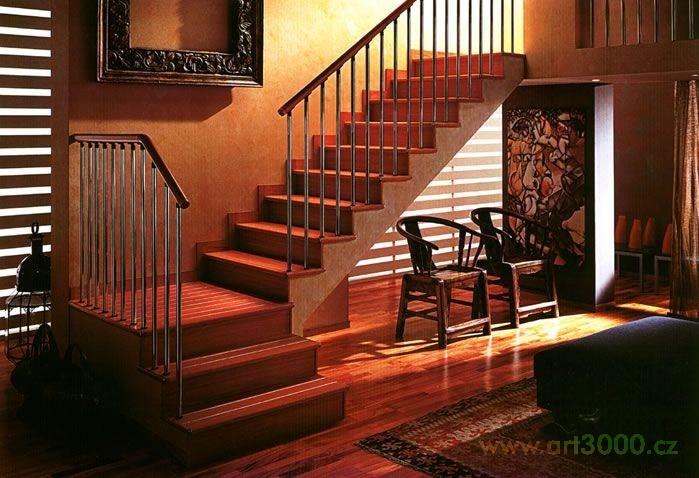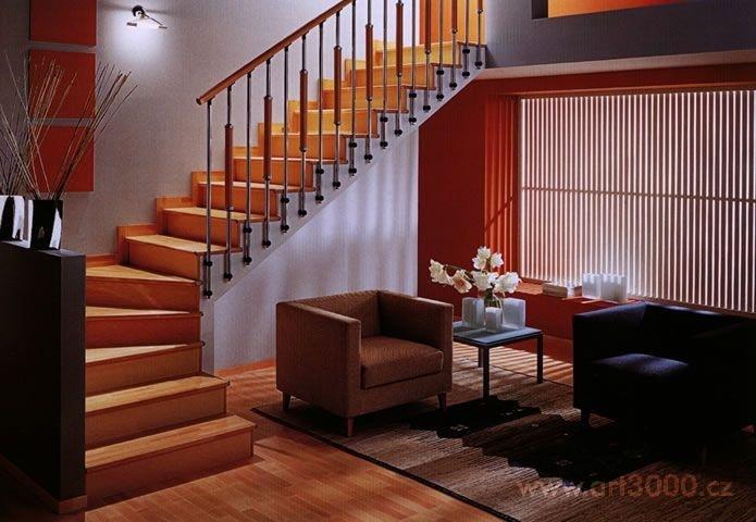 Ukázka různých tvarů, druhů schodišť a zábradlí.