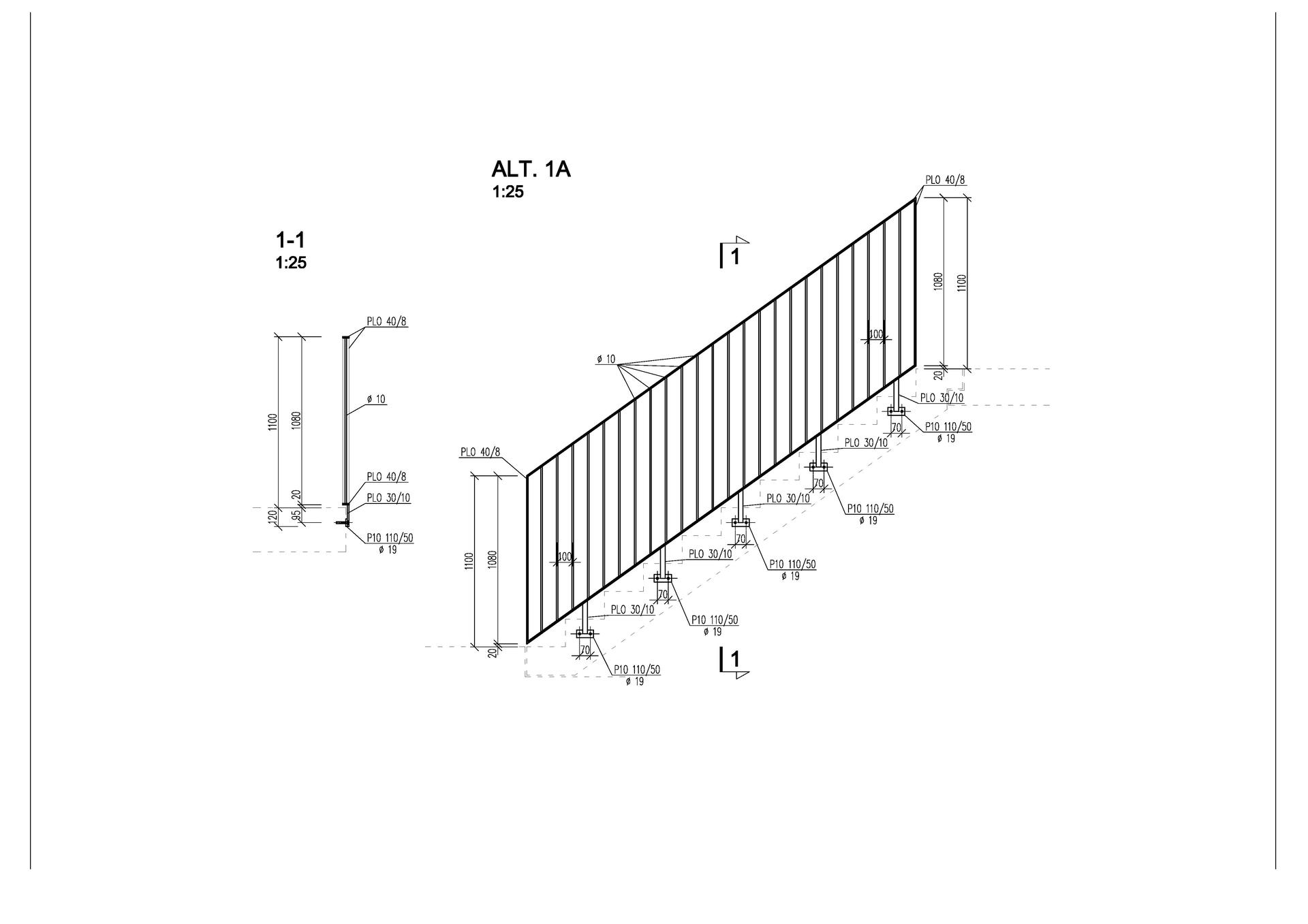 Základní provedení zábradlí je vyrobeno z ploché ocele 40x8 mm.