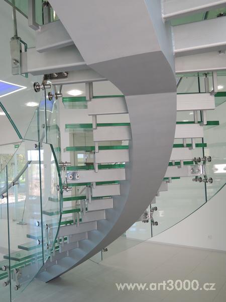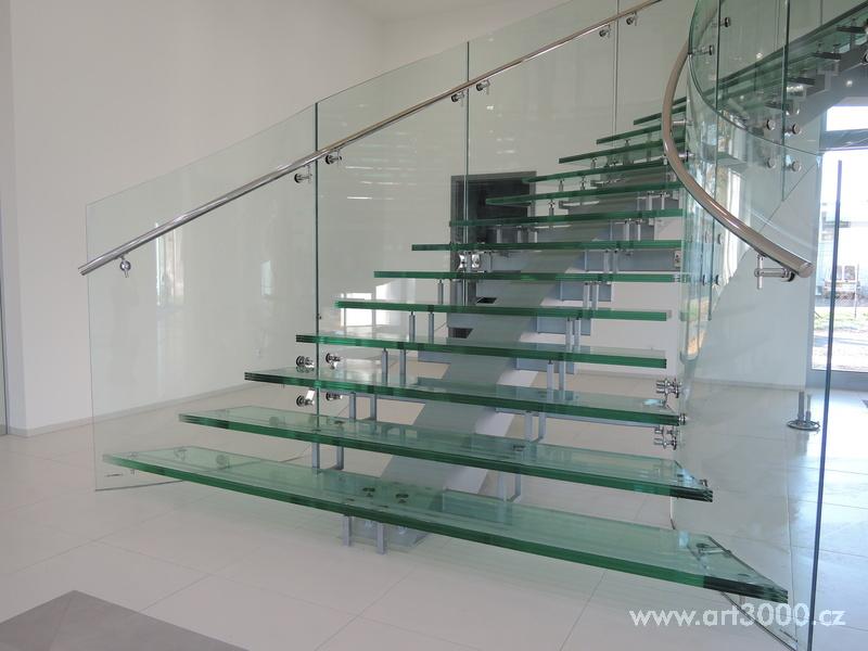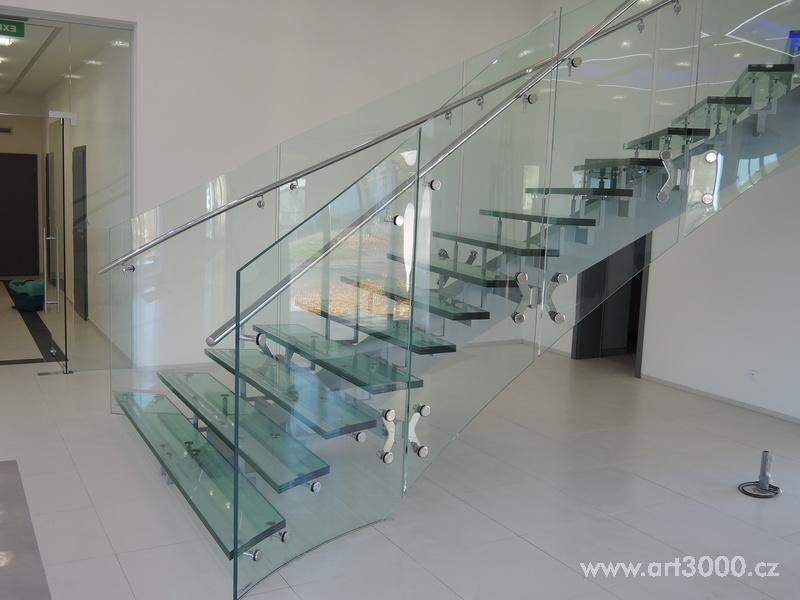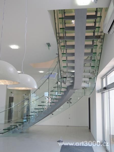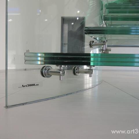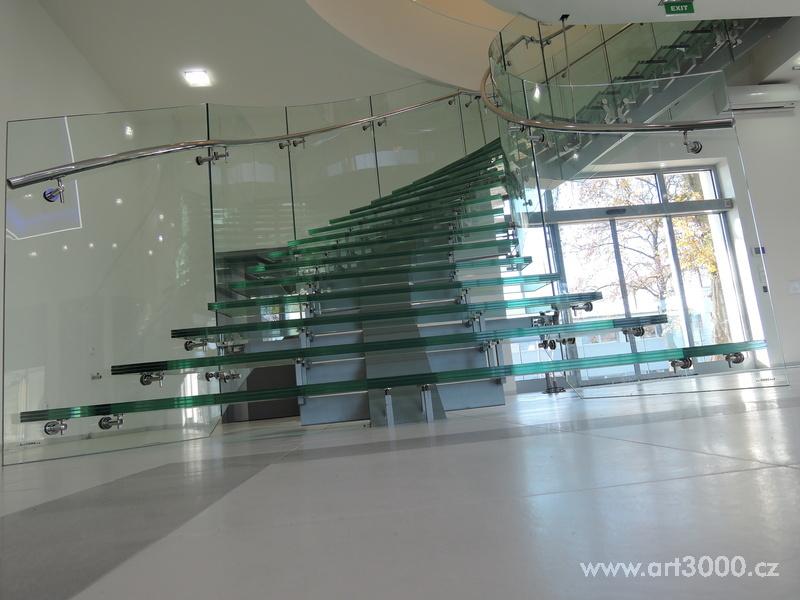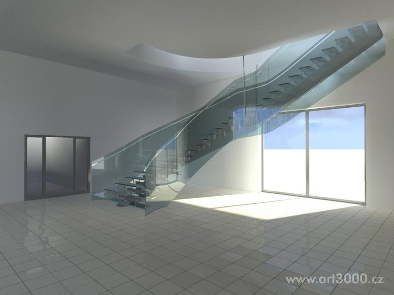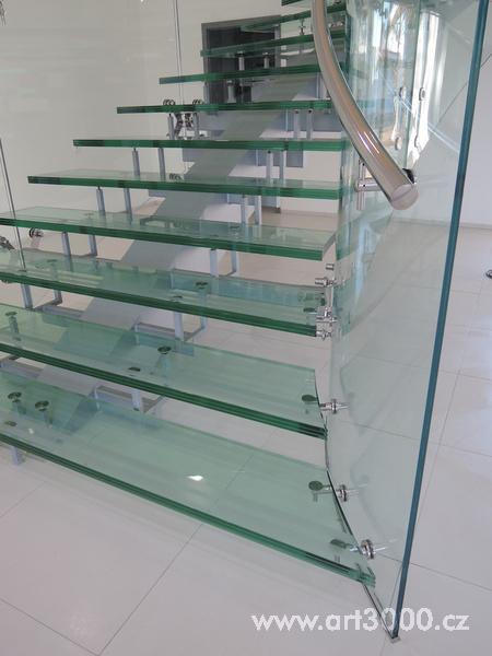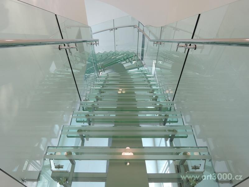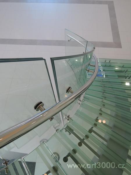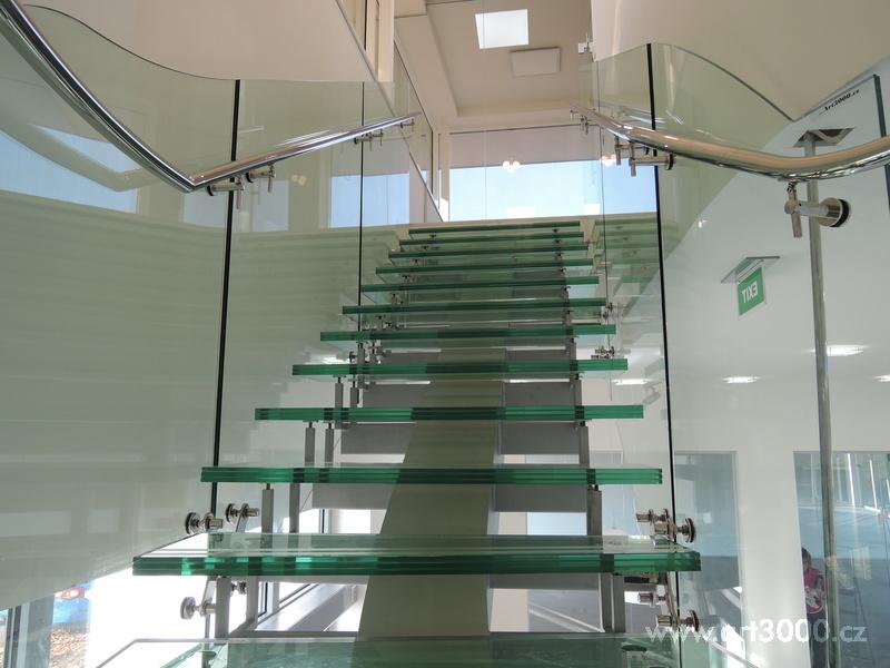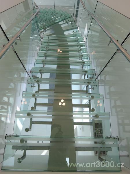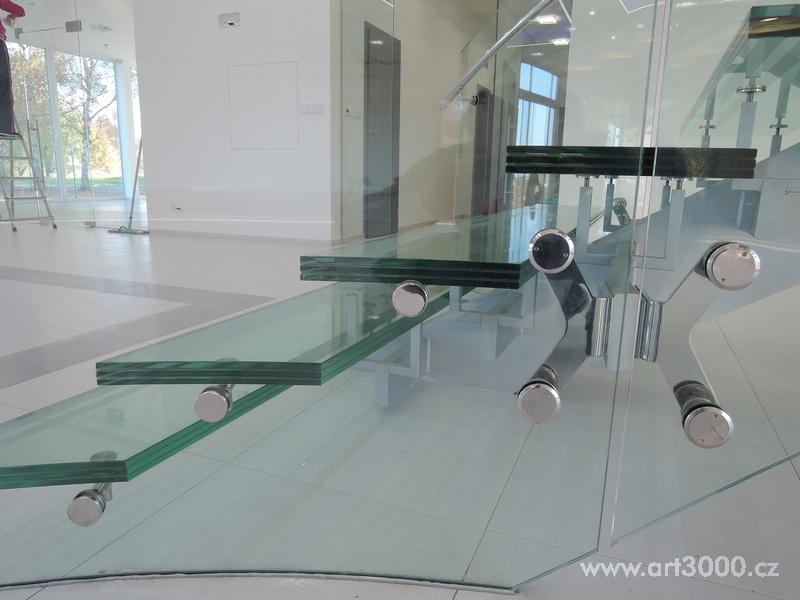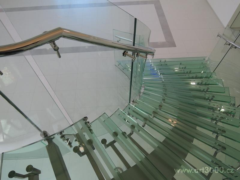 Ukázka realizace skleněného schodiště se zábradlím.