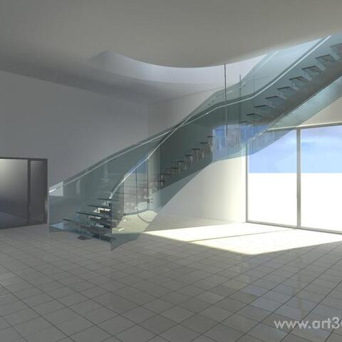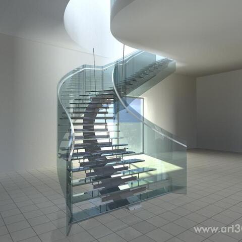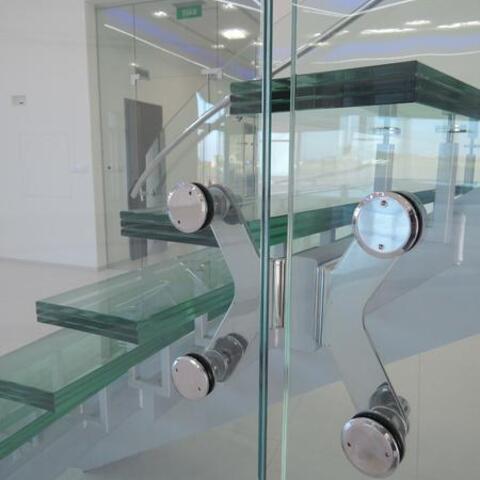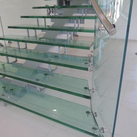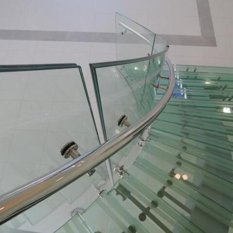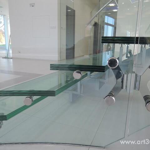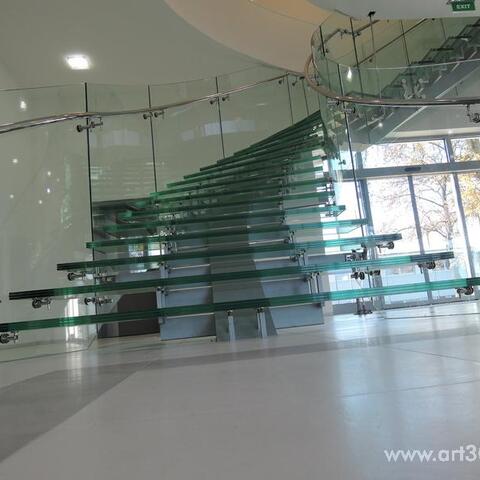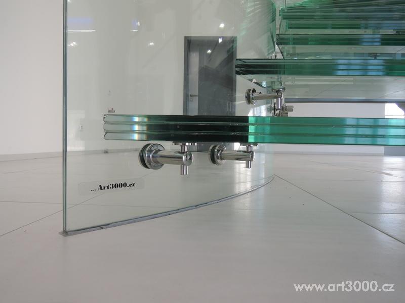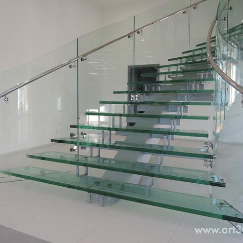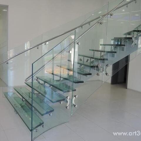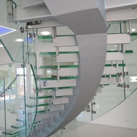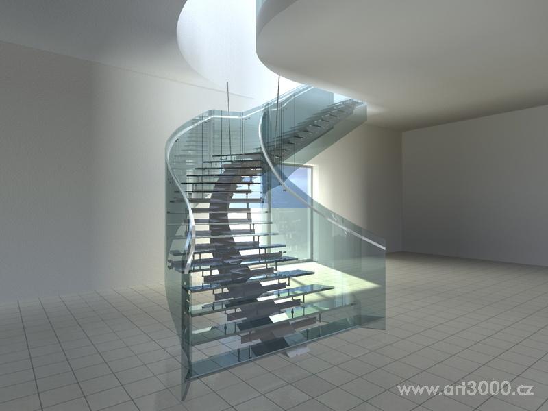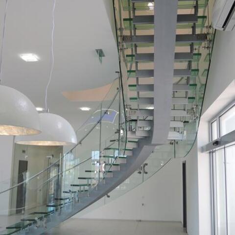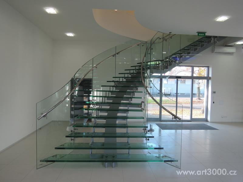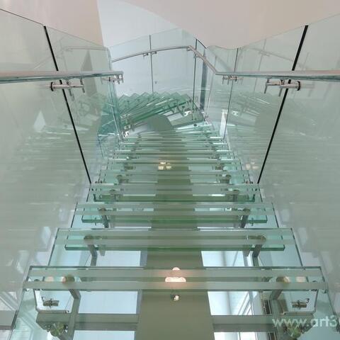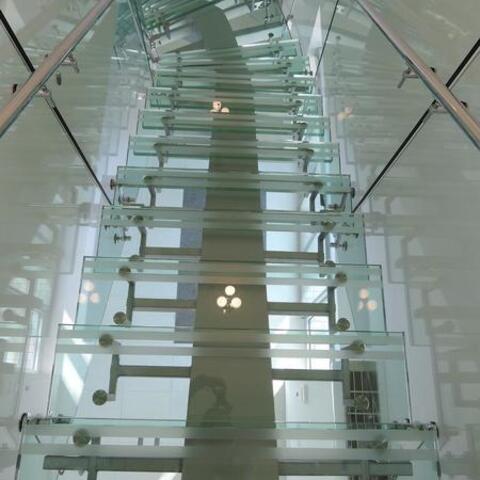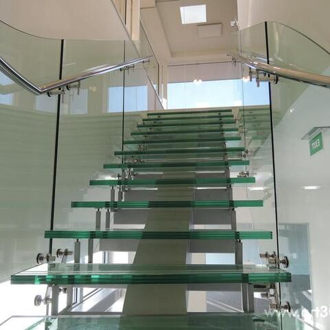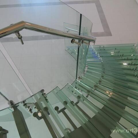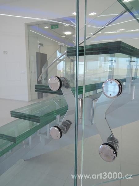 Ukázka realizace skleněného schodiště se zábradlím.