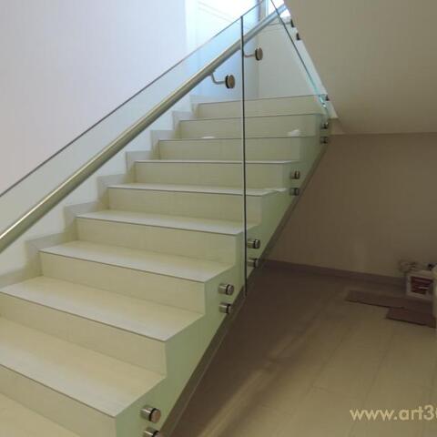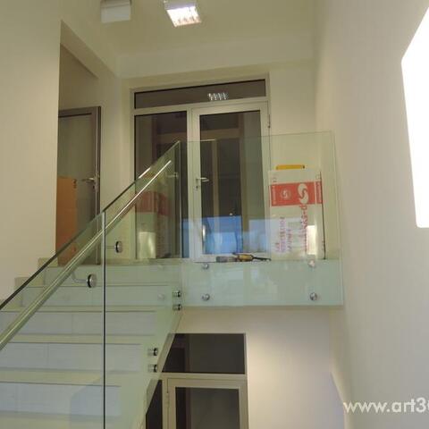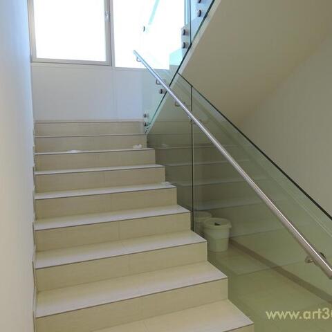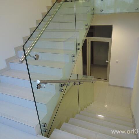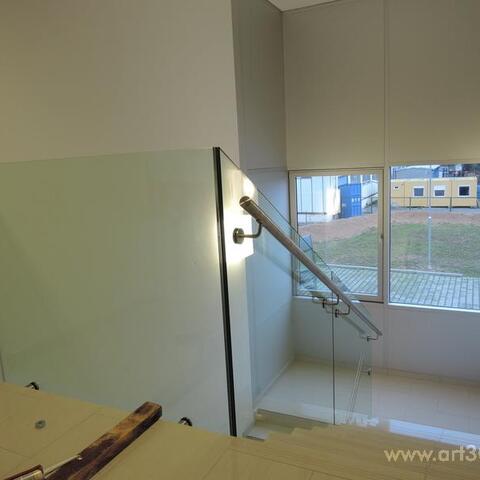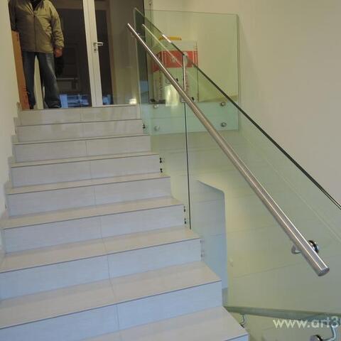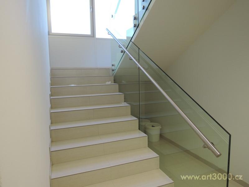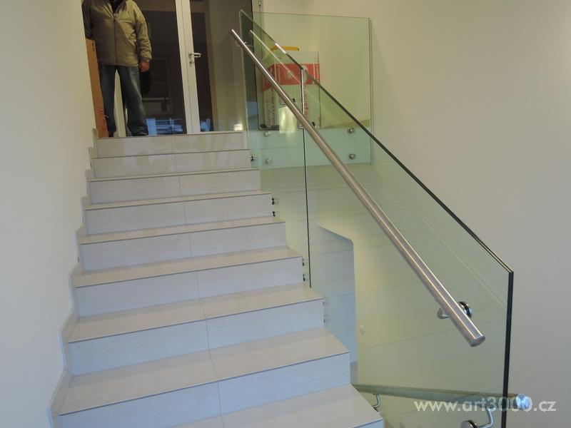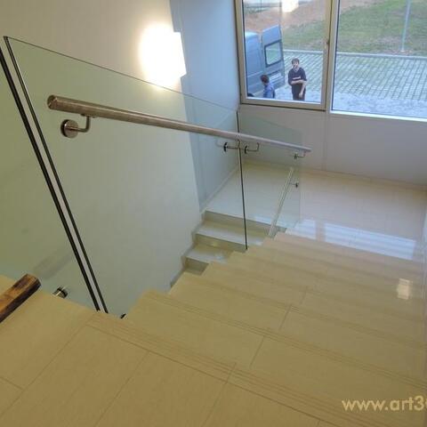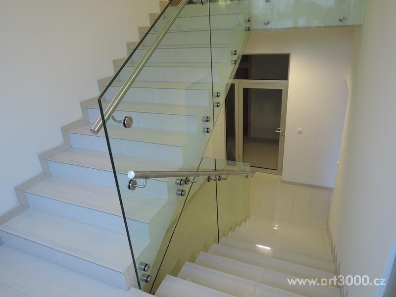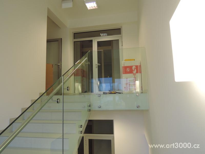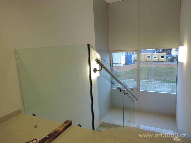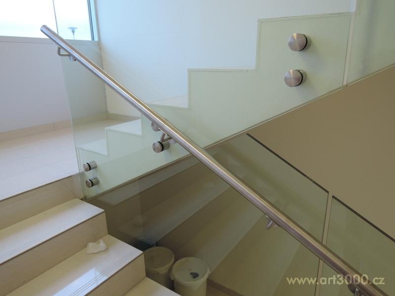 Skleněné zábradlí kotvené na terče s nerez madlem