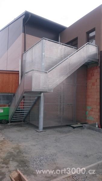 Pozinkované schodiště s opláštěním jako únikový východ z 1. patra.