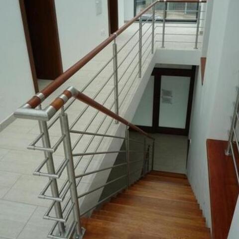 Úspěšně jsme zrealizovali broušené nerezové zábradlí s dřevěnými madly a schodištěm.